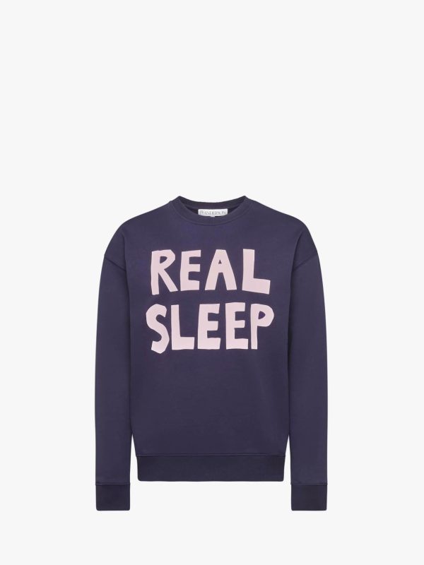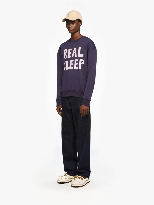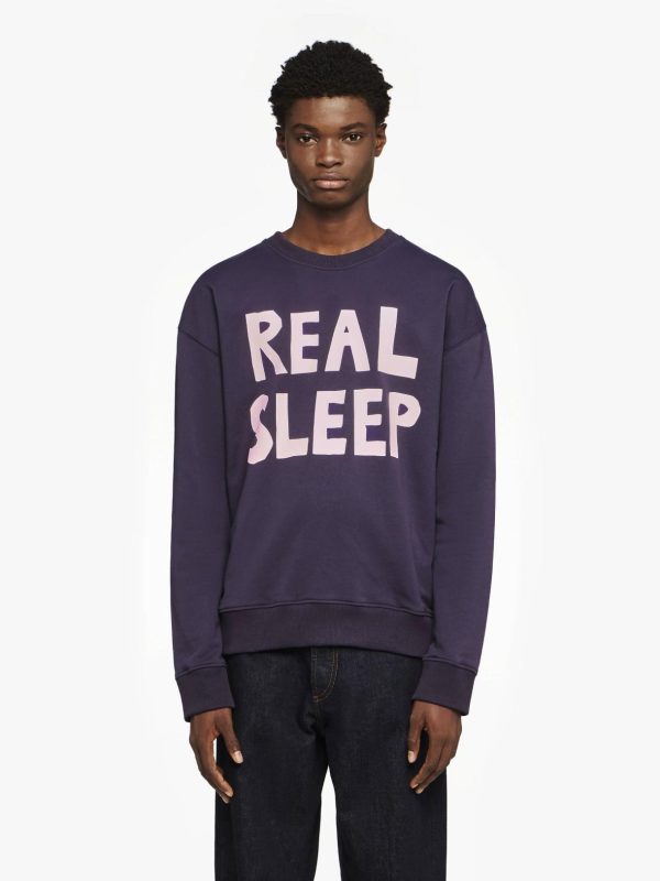 - Jersey sweatshirt with “Real Sleep” slogan print