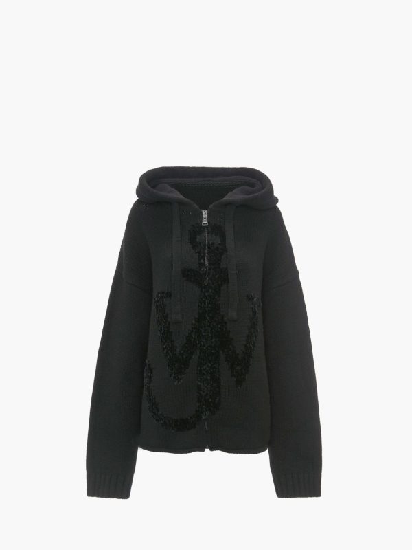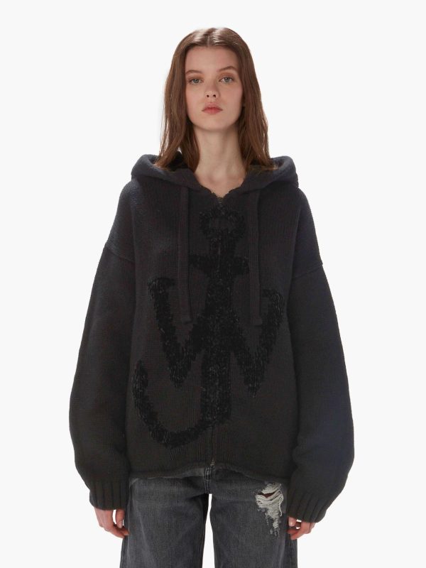 - Signature Oversized zip-front hoodie with anchor motif