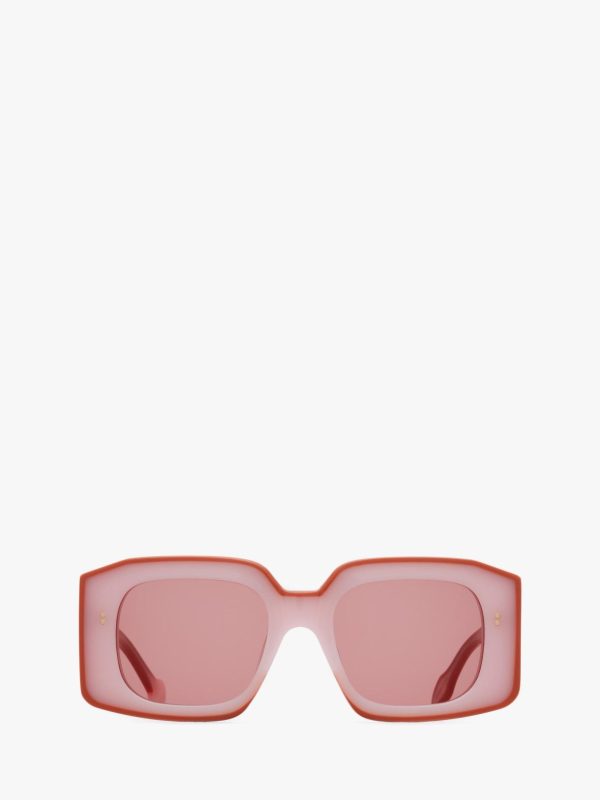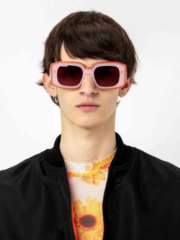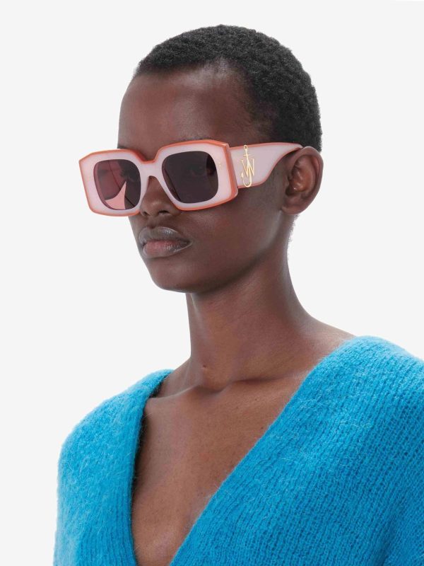 - umper-frame Sunglasses, complete with abstract shaped lenses, and contrasting colour-blocked edging.