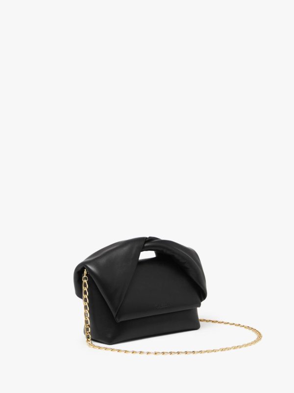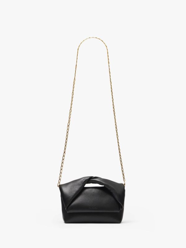 - Soft twisted top handle bag with detachable crossbody gold chain