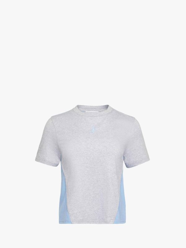 Women PANELLED CROPPED T-SHIRT WITH ANCHOR EMBROIDERY Light Grey Melange/sky Blue | JW Anderson T-Shirts