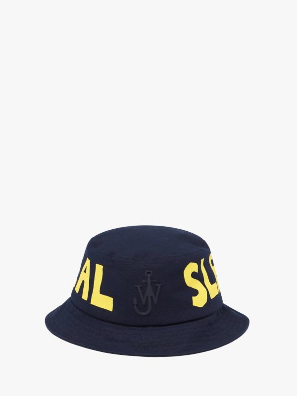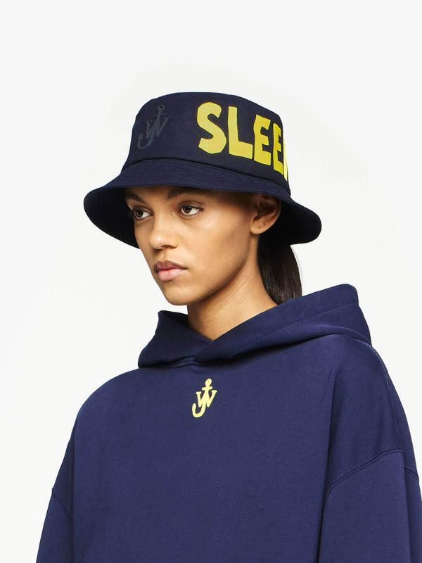 Women REAL SLEEP’ SLOGAN BUCKET HAT Navy | JW Anderson HATS